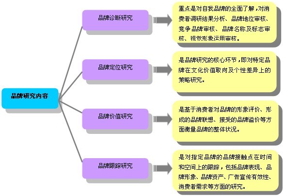 品牌是一種名稱(chēng)、屬于、標(biāo)記或他們的組合運(yùn)用,借以辨認(rèn)某一銷(xiāo)售者或其產(chǎn)品/服務(wù),并使之同競(jìng)爭(zhēng)對(duì)手的產(chǎn)品和服務(wù)區(qū)分開(kāi)來(lái)。品牌研究是采用科學(xué)的市場(chǎng)指標(biāo)評(píng)價(jià)和價(jià)值觀評(píng)價(jià)方法,洞察消費(fèi)者對(duì)品牌的全面體驗(yàn)、感受與評(píng)價(jià),包括對(duì)產(chǎn)品功能、使用環(huán)境、使用者、制造商與經(jīng)銷(xiāo)商特點(diǎn)等等方面。